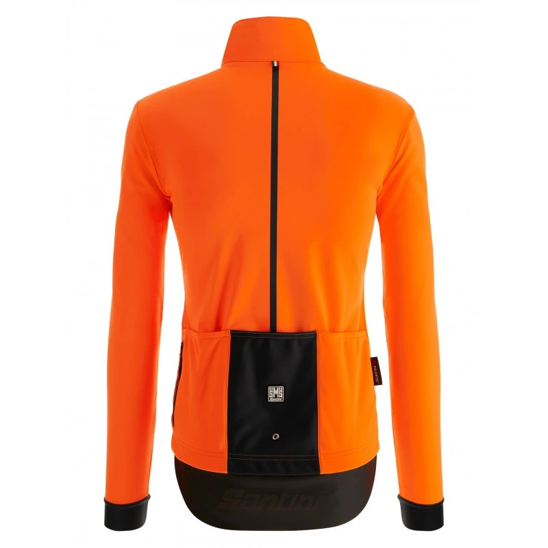 Tracolla rifrangente, inserti posteriori e logo Santini rifrangente garantiscono la massima sicurezza in condizioni di scarsa visibilità.”