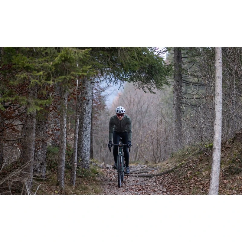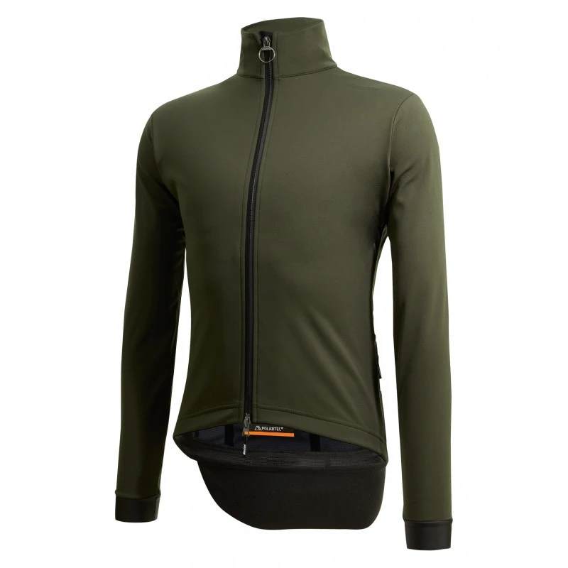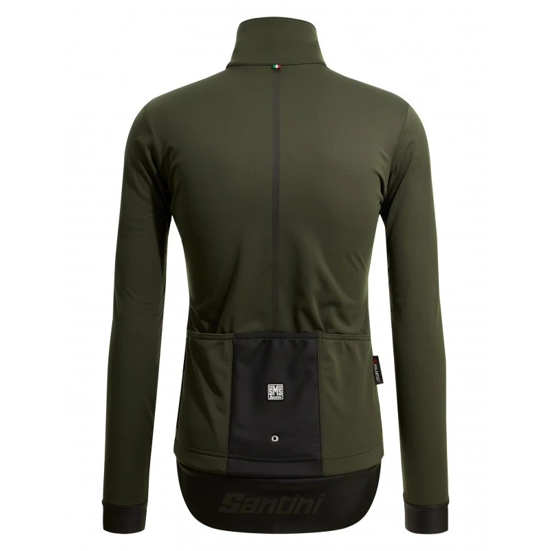 Tracolla rifrangente, inserti posteriori e logo Santini rifrangente garantiscono la massima sicurezza in condizioni di scarsa visibilità.”
