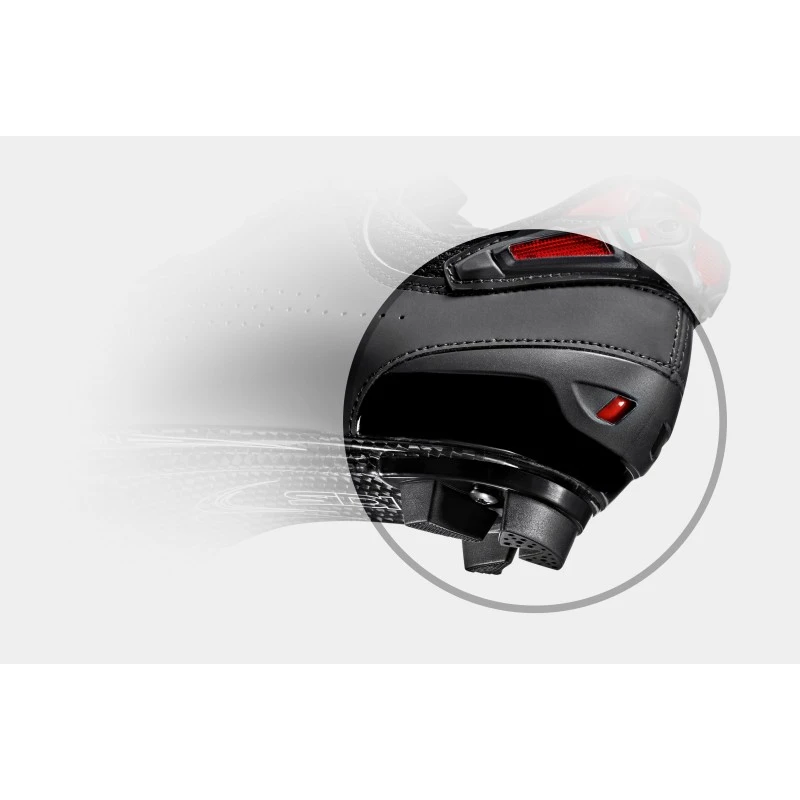 Per maggior sicurezza durante la pedalata, gli inserti reflex del nuovo tallone tecnico consentono una maggiore visibilità in condizioni di scarsa visibilità.