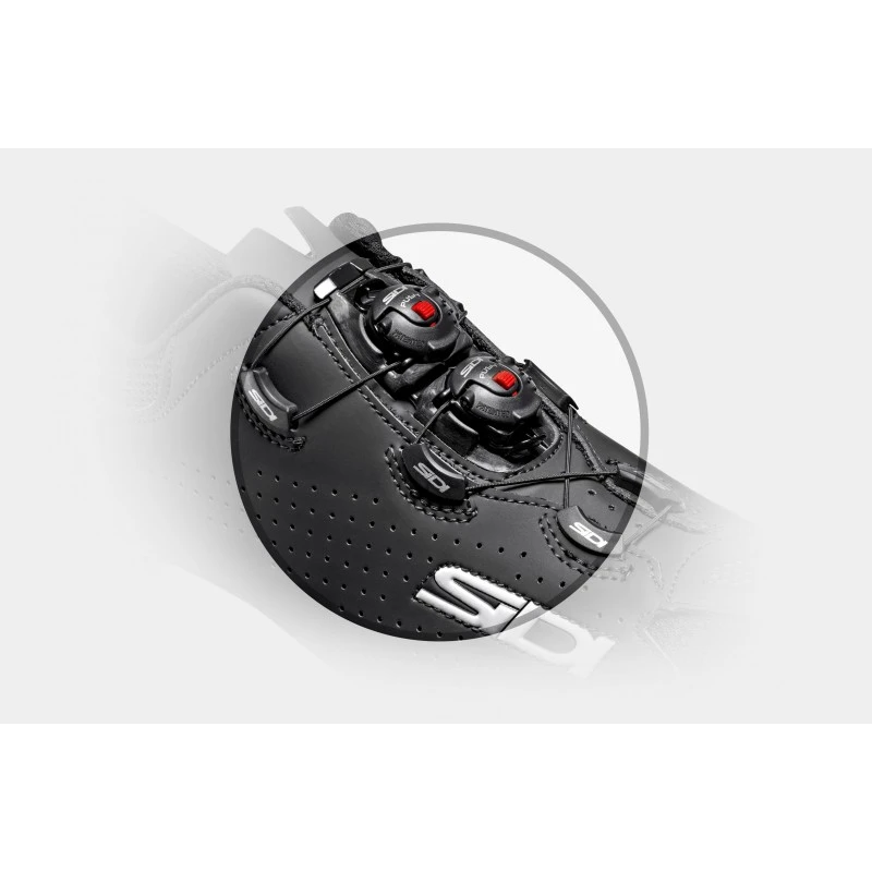 Elimina completamente tutta la zona di pressione sul collo del piede e migliora notevolmente la sensazione di chiusura. Dotato di una minor superfice d’appoggio sulla lingua della scarpa, e di un sistema di flessione centrale, riesce ad accompagnare le differenti necessità e conformazioni dei ciclisti, senza creare zone di iperpressione. Garantisce regolazione micrometrica, velocità di chiusura/rilascio della tensione ed è sostituibile.